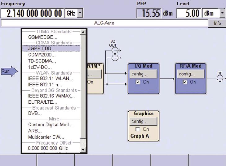 R&S?SMBV100A 的圖形化用戶(hù)界面中顯示了各種內(nèi)部可用的數(shù)字標(biāo)準(zhǔn)(選配)