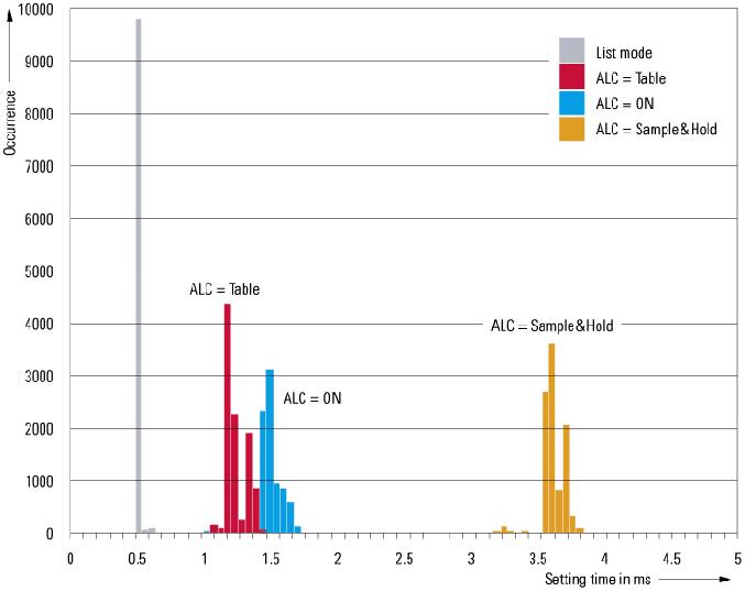 I/Q 模式下測(cè)量電平設(shè)定時(shí)間柱狀圖